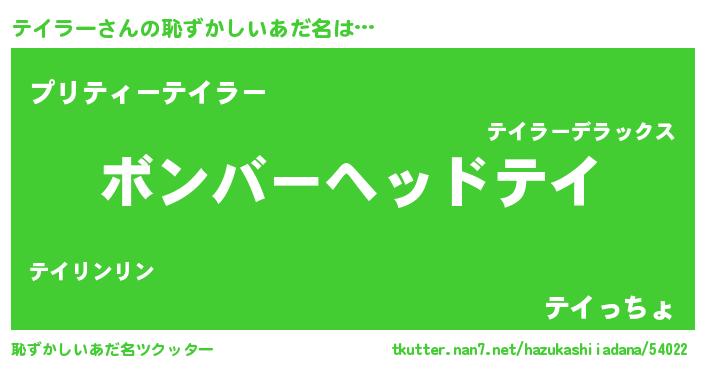 | 男性向けラノベタイトル風あだ名 | 『テイラー~年齢イコール彼女いない歴の魔法使い~』 |
