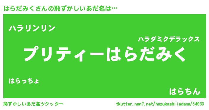 | 男性向けラノベタイトル風あだ名 | 『はらだみくに滅ぼされるだけの簡単なお仕事です』 |