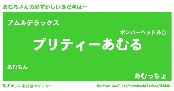 | 意味不明あだ名 | 『住所不定無職あむる(43歳)』『自称あむる』 |