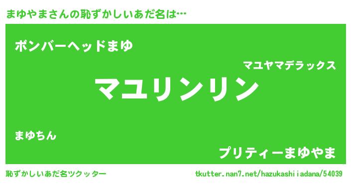| ヘコむあだ名 | 『まゆっぺ』『まゆふぇ~』 |