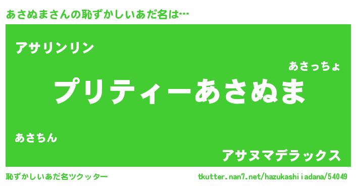 | 意味不明あだ名 | 『住所不定無職あさぬま(12歳)』 |