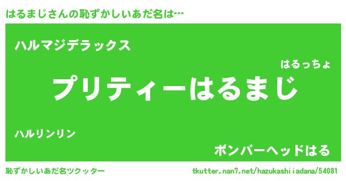 | 男性向けラノベタイトル風あだ名 | 『ハルマジスレイヤー』 |