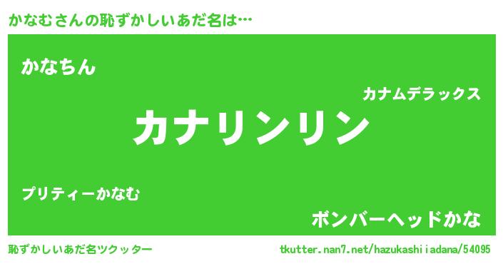 | 女子向けラノベタイトル風あだ名 | 『かなむの卵を拾いまして』 |