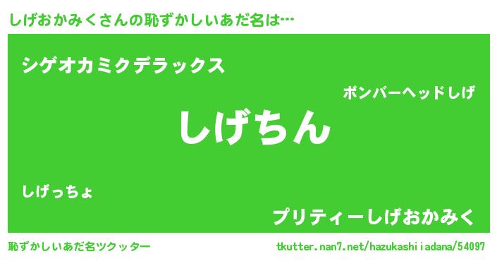 | 意味不明あだ名 | 『永久保存しげおかみく』 |