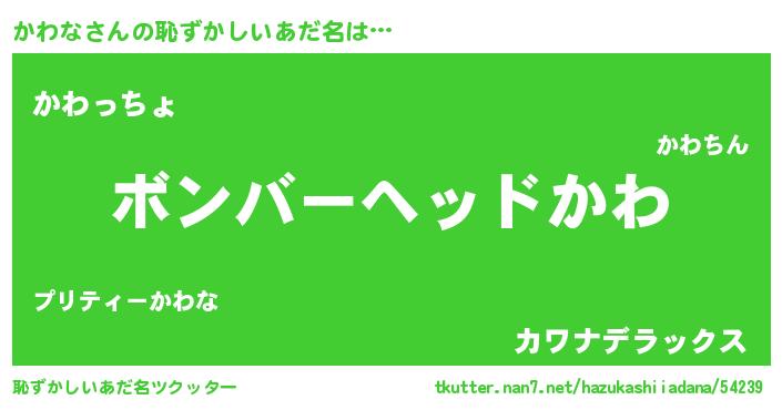 | ヒーロー風カッコイイあだ名 | 『慈愛の使者かわな』『超時空戦士カワナ』 |