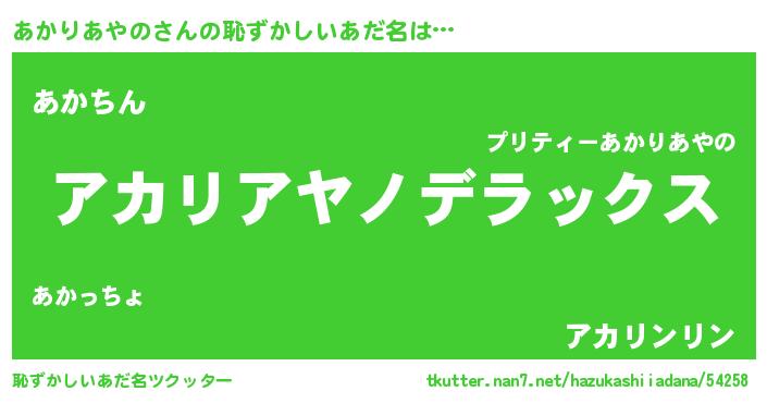| ヘコむあだ名 | 『あかりあやの(苦笑)』『あかを』 |
