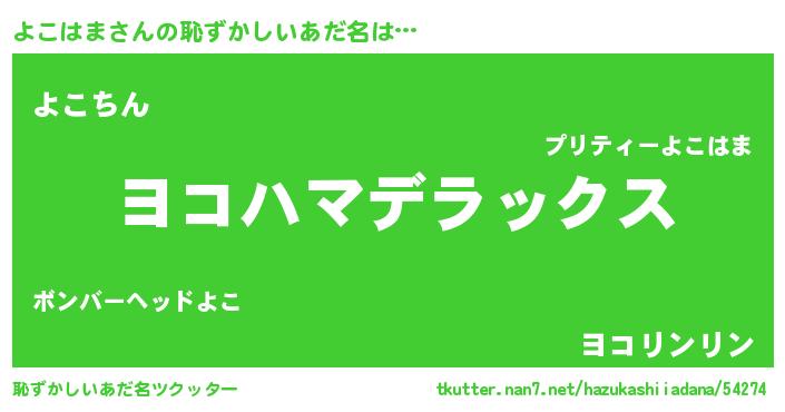 | 意味不明あだ名 | 『自称よこはま』『なめこ科よこはま属』 |
