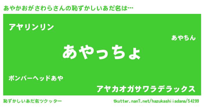 | 意味不明あだ名 | 『あやかおがさわらフォーエバー』 |