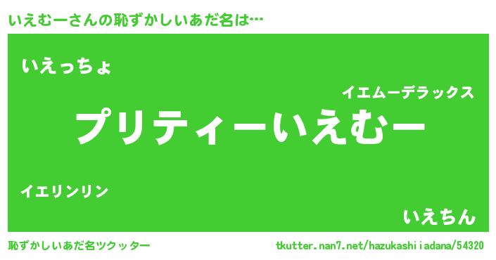 | 意味不明あだ名 | 『ペロリンいえむー』『永久保存いえむー』 |