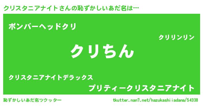 | 意味不明あだ名 | 『永久保存クリスタニアナイト』 |