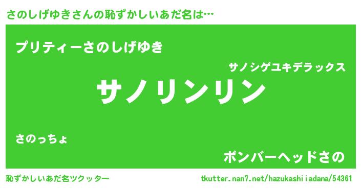 | ポケモン風あだ名 | 『サーノイ』『ヒサノシゲユキ』 |