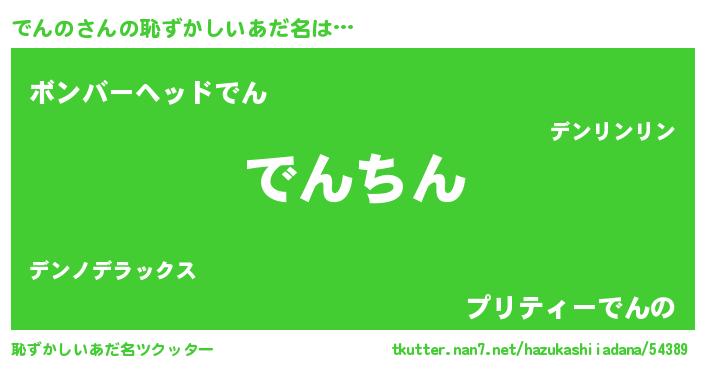 | ヘコむあだ名 | 『でんの(震え声)』『でんにゅー』 |