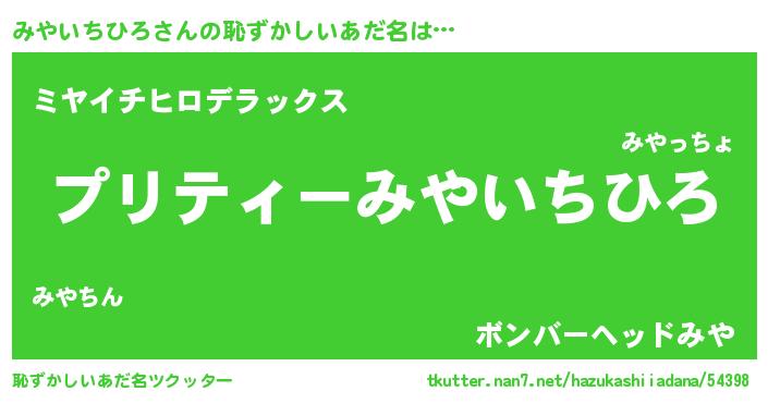 | ヒーロー風カッコイイあだ名 | 『スーパーミヤイチヒロ』『仮面ミヤダー』 |