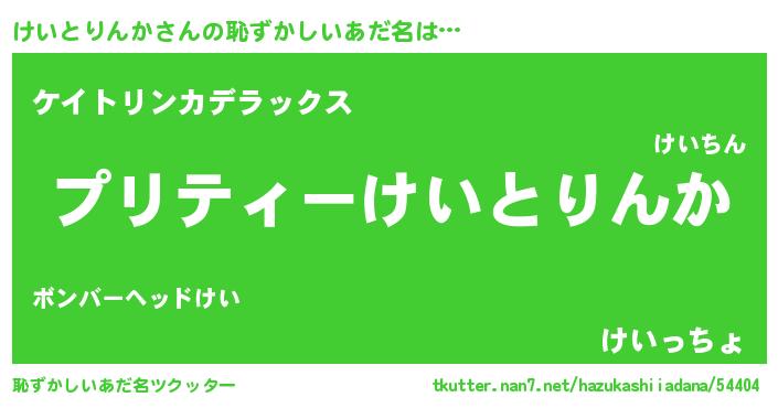 | 男性向けラノベタイトル風あだ名 | 『けいとりんか~年齢イコール彼女いない歴の魔法使い~』 |