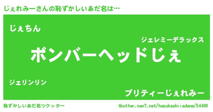 | ヘコむあだ名 | 『じぇれみー(小並感)』『じぇにー』 |