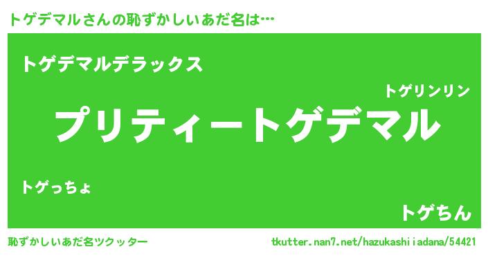 | ヒーロー風カッコイイあだ名 | 『仮面トゲダー』『スーパートゲデマル』 |