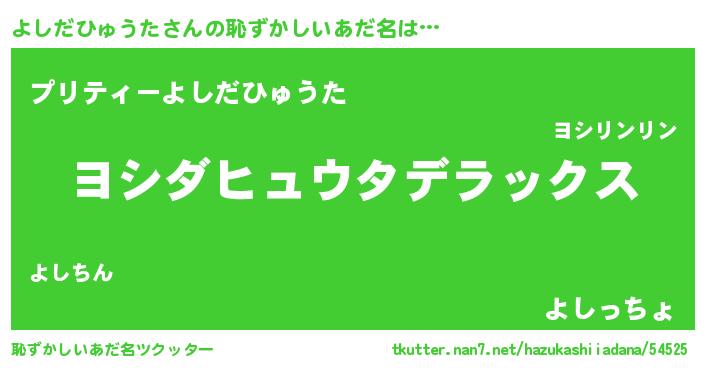 | 意味不明あだ名 | 『自称よしだひゅうた』 |