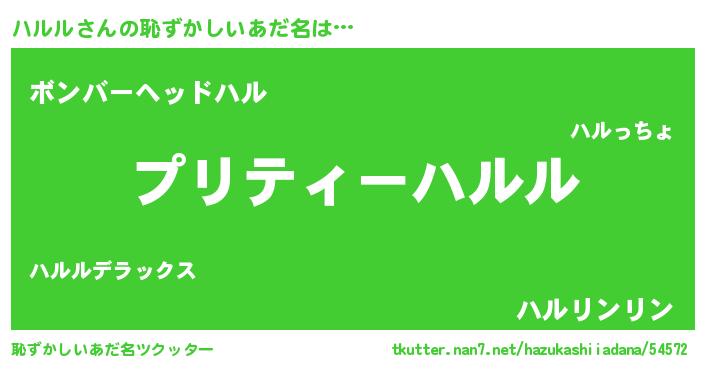 | ヒーロー風カッコイイあだ名 | 『スーパーハルル』『愛の使者ハルル』 |