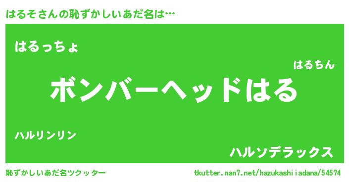 | 意味不明あだ名 | 『眠気覚ましガムはるそ味』『自称はるそ』 |