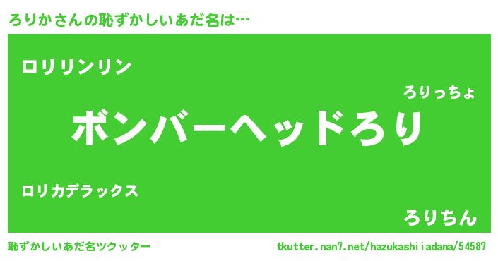| ヒーロー風カッコイイあだ名 | 『友情の使者ろりか』『銀牙騎士ロリ』 |