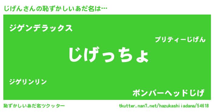 | 意味不明あだ名 | 『住所不定無職じげん(14歳)』『自称じげん』 |