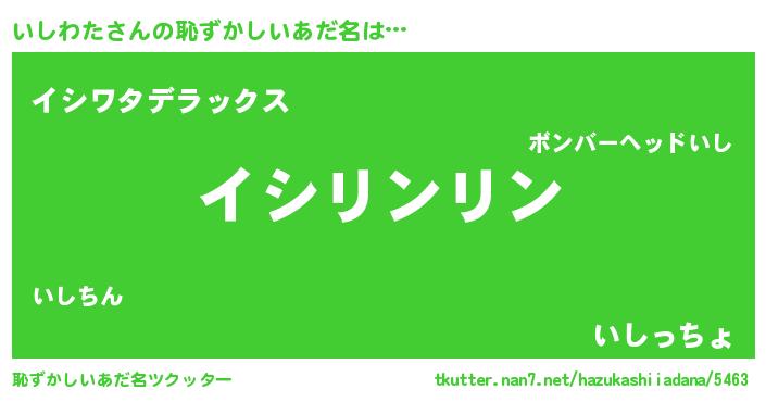 | 意味不明あだ名 | 『とにかく怪しいいしわた』 |