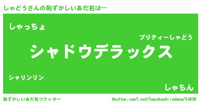 | 男性向けラノベタイトル風あだ名 | 『Re:しゃどうから始める異世界生活』 |