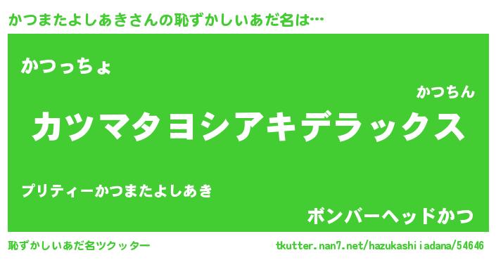 | 男性向けラノベタイトル風あだ名 | 『Re:かつまたよしあきから始める異世界生活』 |