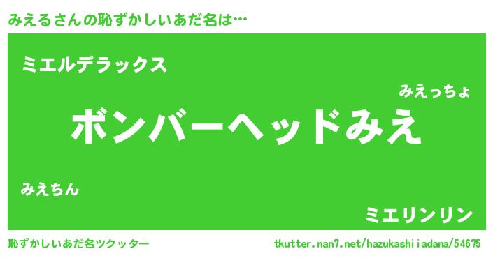| ヘコむあだ名 | 『みえ太郎』『牛乳』『みえにー』 |