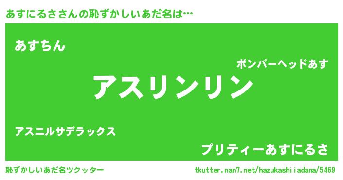 | 意味不明あだ名 | 『とにかく怪しいあすにるさ』 |