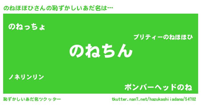 | ヘコむあだ名 | 『のねほほひ(小並感)』『牛乳』 |
