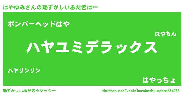 | ヒーロー風カッコイイあだ名 | 『究極戦士ハヤユミ』『ネオハヤユミ』 |