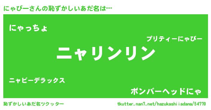 | 欧米人風あだ名 | 『ウサインにゃびー』『ダニエルにゃびー』 |