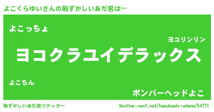 | 肩書あだ名 | 『よこくらゆい閣下』『よこくらゆい船長』 |