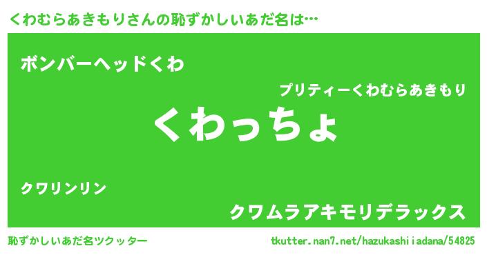 | 欧米人風あだ名 | 『くわむらあきもりクリステル』 |