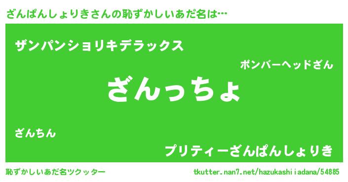 | 意味不明あだ名 | 『ざんぱんしょりきフォーエバー』 |