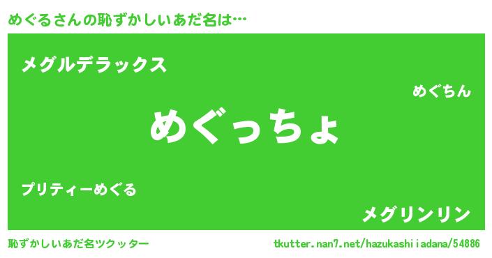 | ヘコむあだ名 | 『なまこ酢』『めぐっぺ』 |