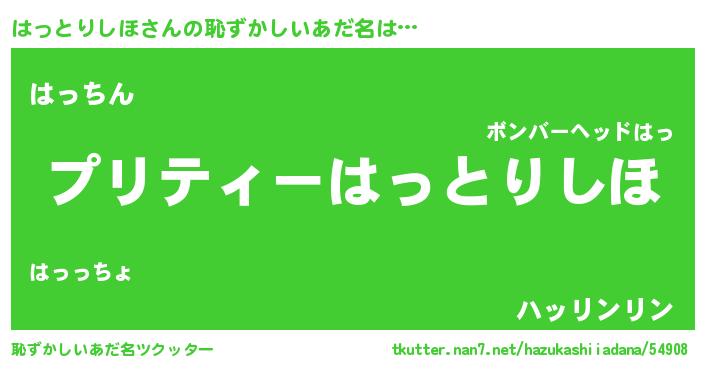 | 男性向けラノベタイトル風あだ名 | 『ハットリシホアートオンライン』 |