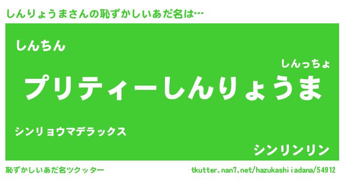 | ヒーロー風カッコイイあだ名 | 『スーパーシンリョウマ』『仮面シンダー』 |
