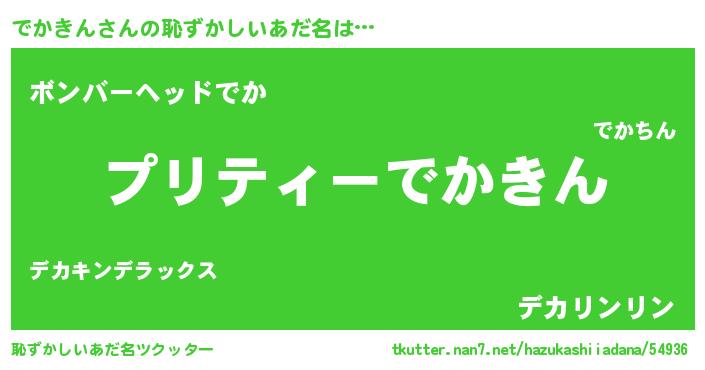 | 男性向けラノベタイトル風あだ名 | 『この素晴らしい世界にでかきんを!』 |