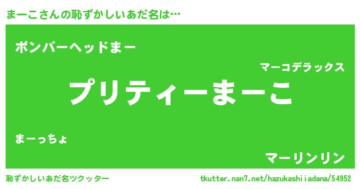 | 男性向けラノベタイトル風あだ名 | 『この素晴らしい世界にまーこを!』 |