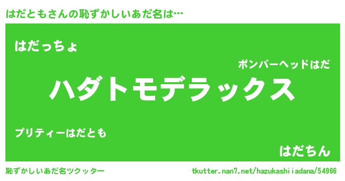 | 意味不明あだ名 | 『自称はだとも』『はだともフォーエバー』 |