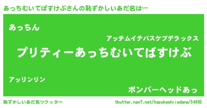 | 男性向けラノベタイトル風あだ名 | 『転生したらあっちむいてばすけぶだった件』 |