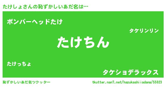 | 意味不明あだ名 | 『永久保存たけしょ』『自称たけしょ』 |