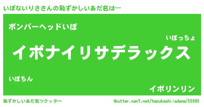 | 意味不明あだ名 | 『自称いぼないりさ』 |