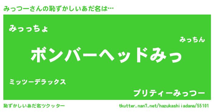 | ヘコむあだ名 | 『なまこ酢』『みっもー』 |