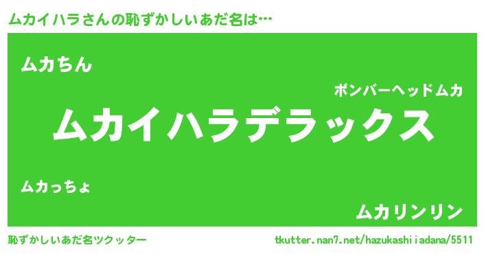 | 男性向けラノベタイトル風あだ名 | 『Re:ムカイハラから始める異世界生活』 |