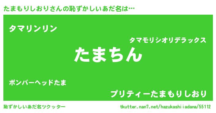 | ヘコむあだ名 | 『たまもりしおり(遠い目)』『たまお』 |