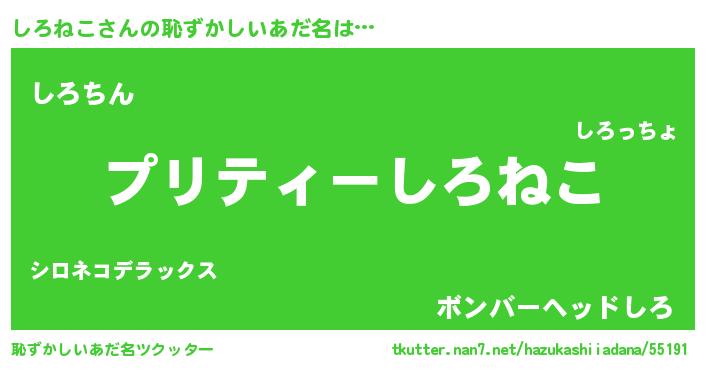 | ヘコむあだ名 | 『しろにゅー』『しろねこ(爆)』 |
