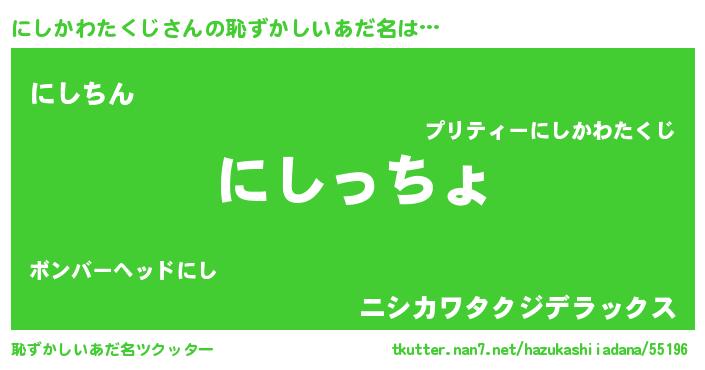 | 意味不明あだ名 | 『にしかわたくじフォーエバー』 |
